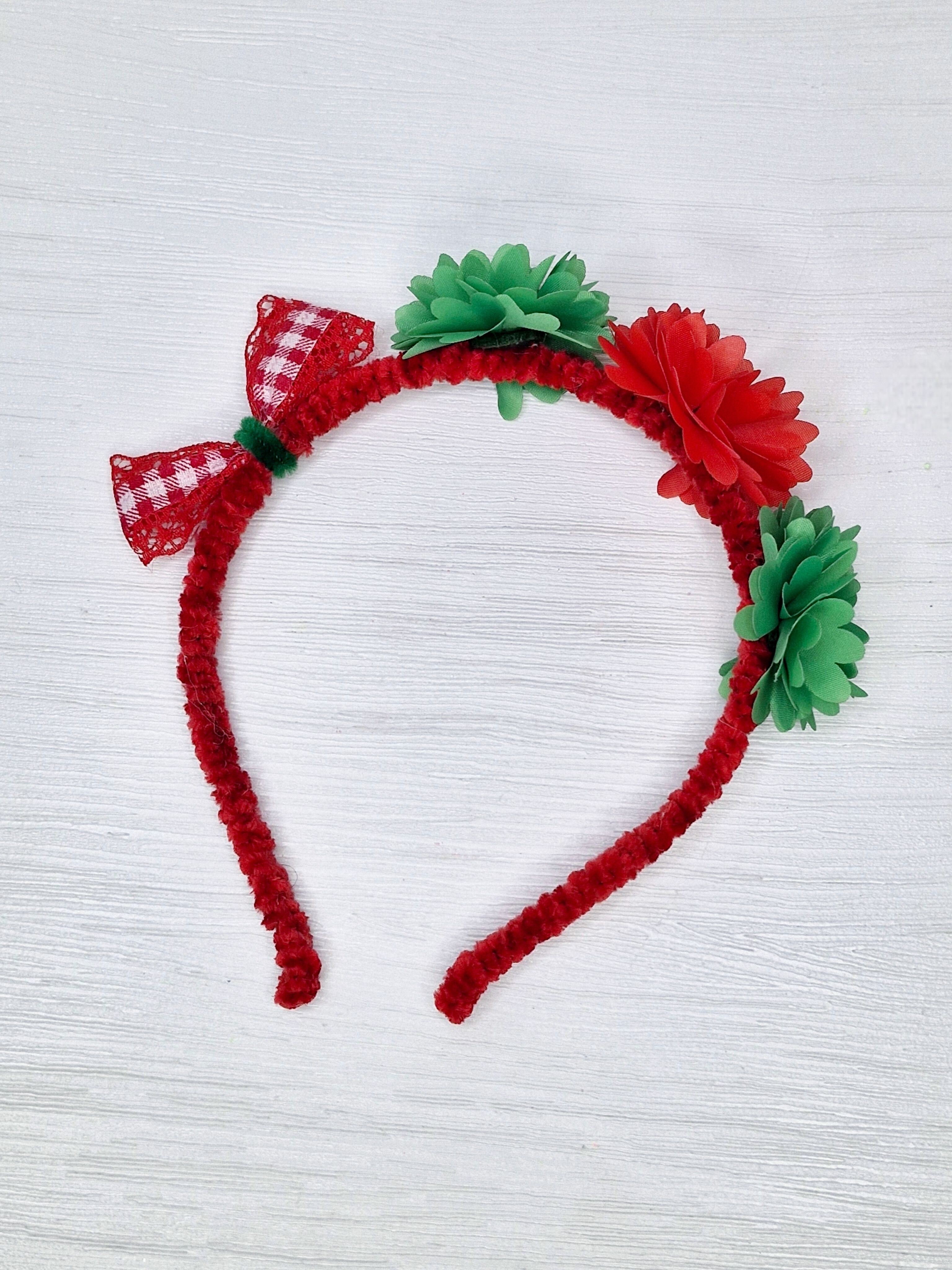 تل قرمز مخمل مدل گل نگین‌دار و پاپیون