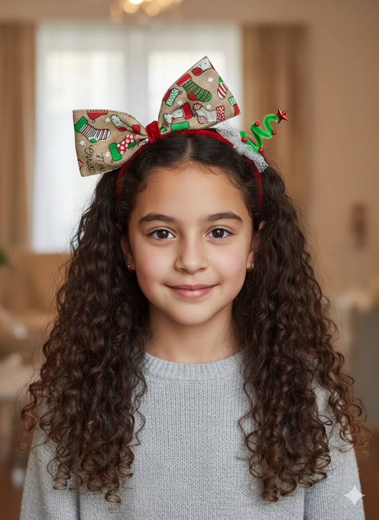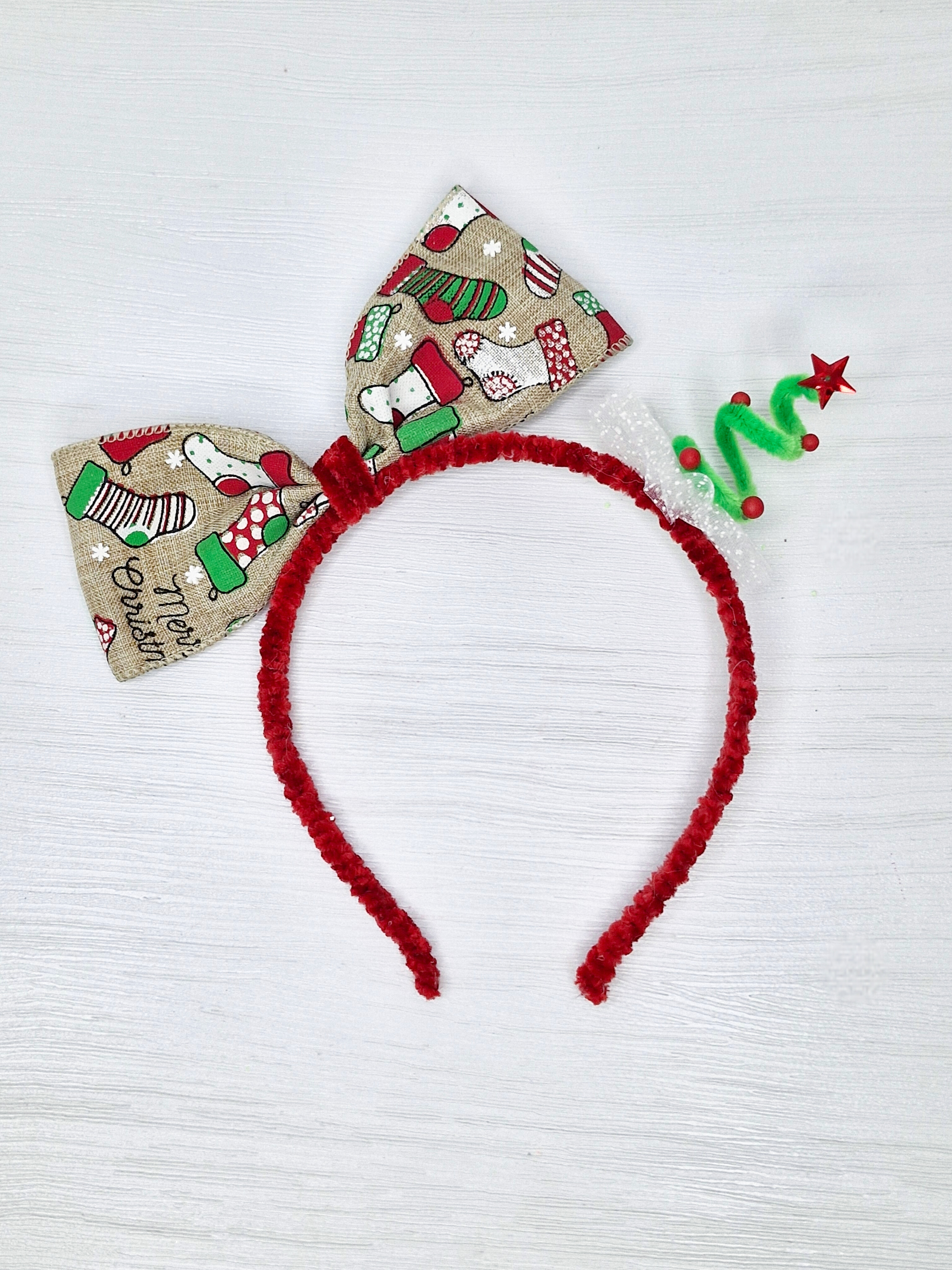 تل قرمز مخمل مدل پاپیون و درخت کریسمسی