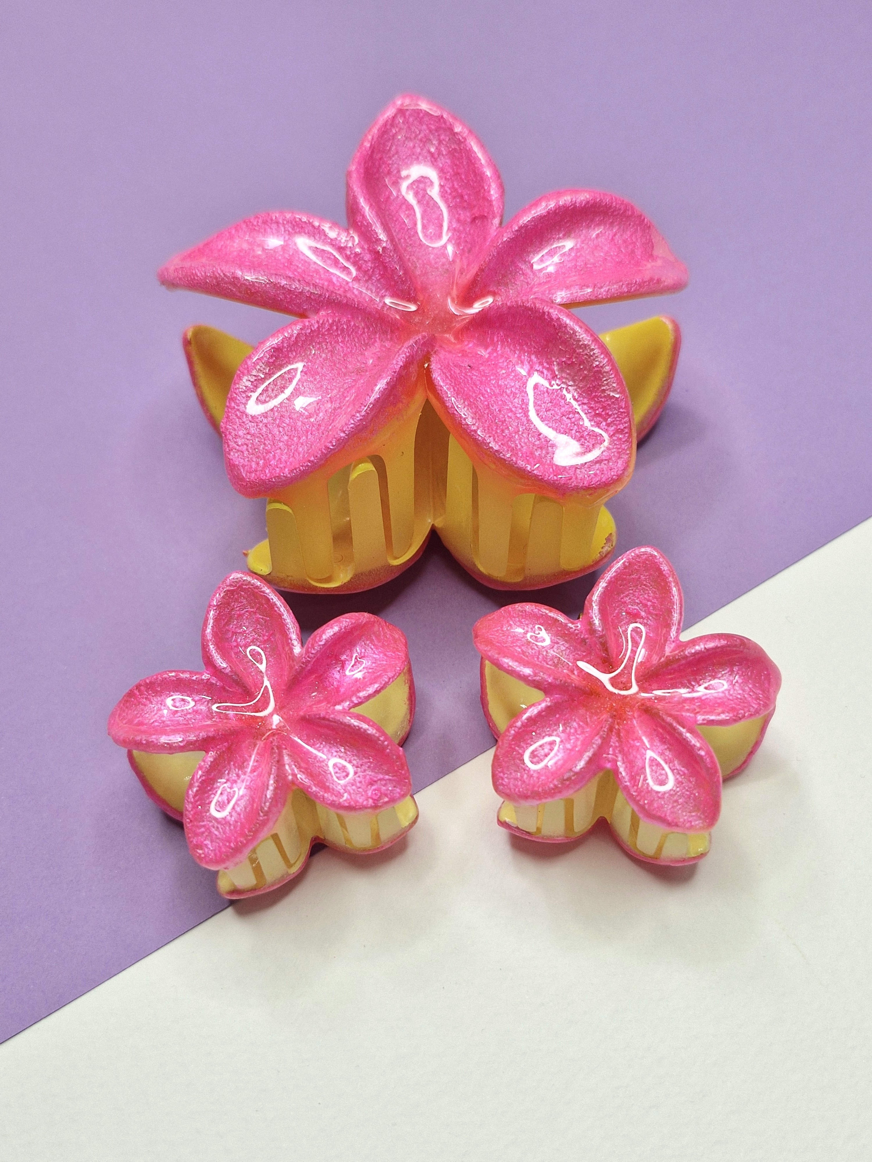 کلیپس پلومریا سه عددی رنگ صورتی زرد