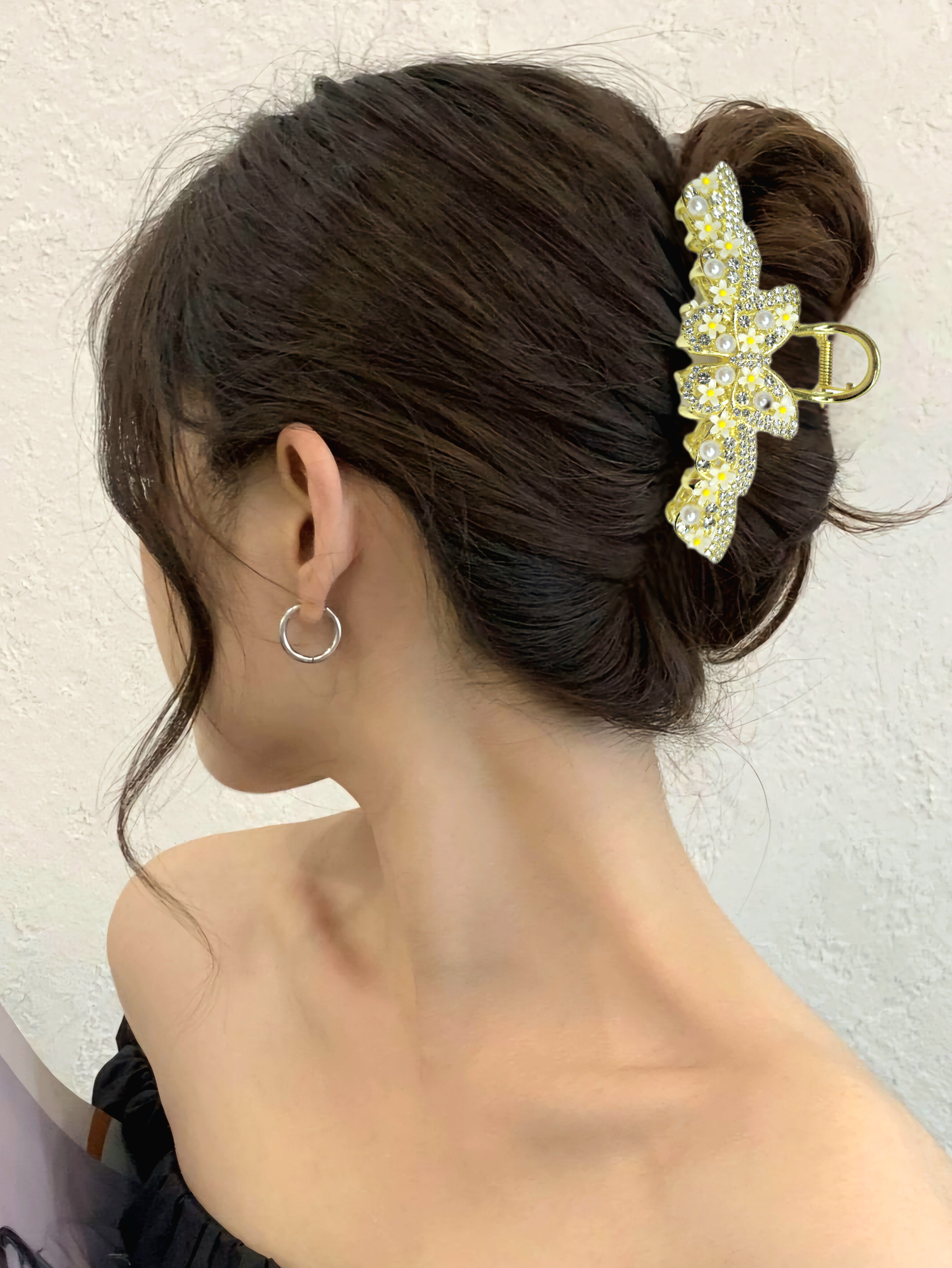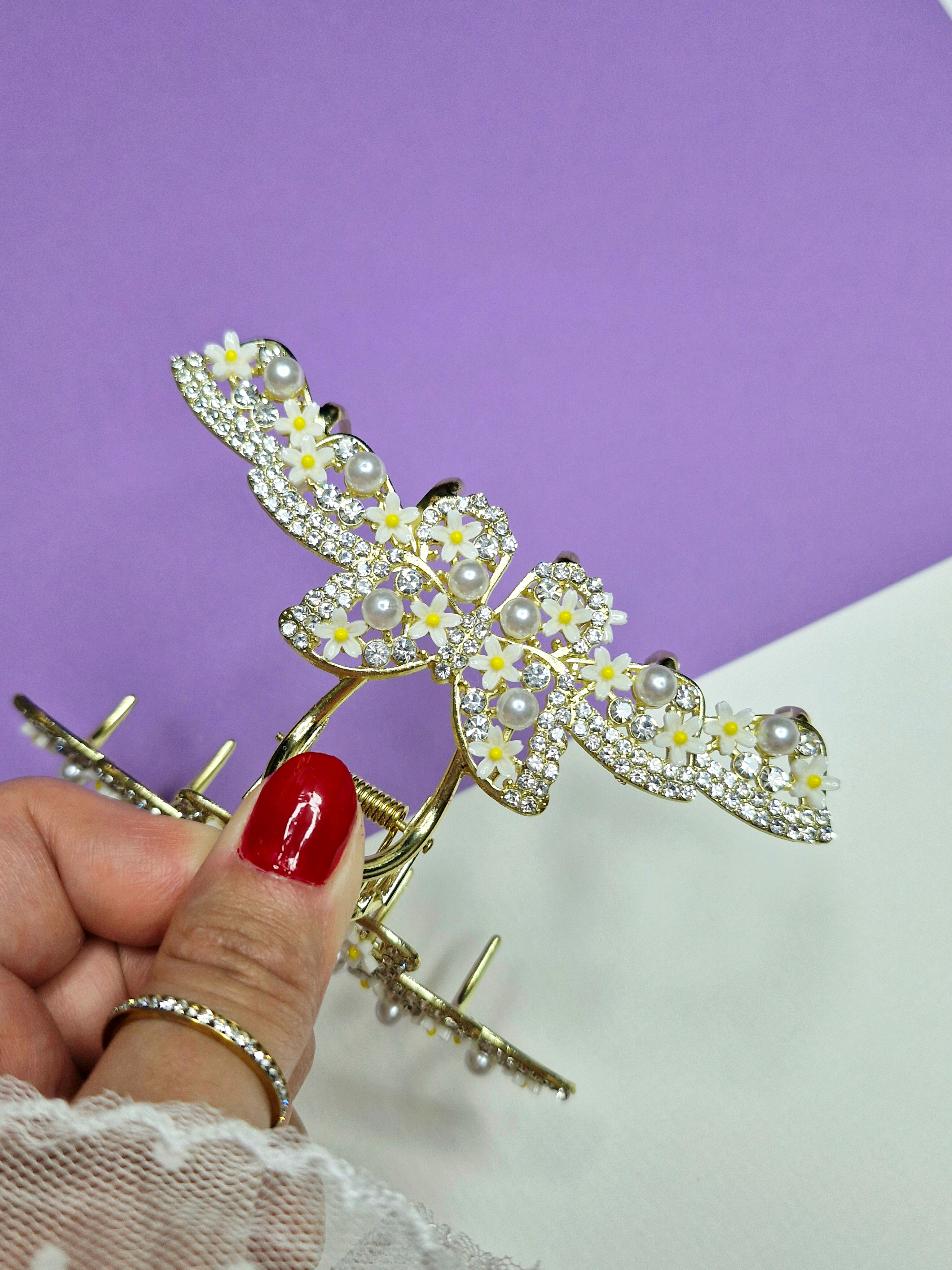 کلیپس مجلسی نگینی مرواریدی مدل گل بابونه و پروانه