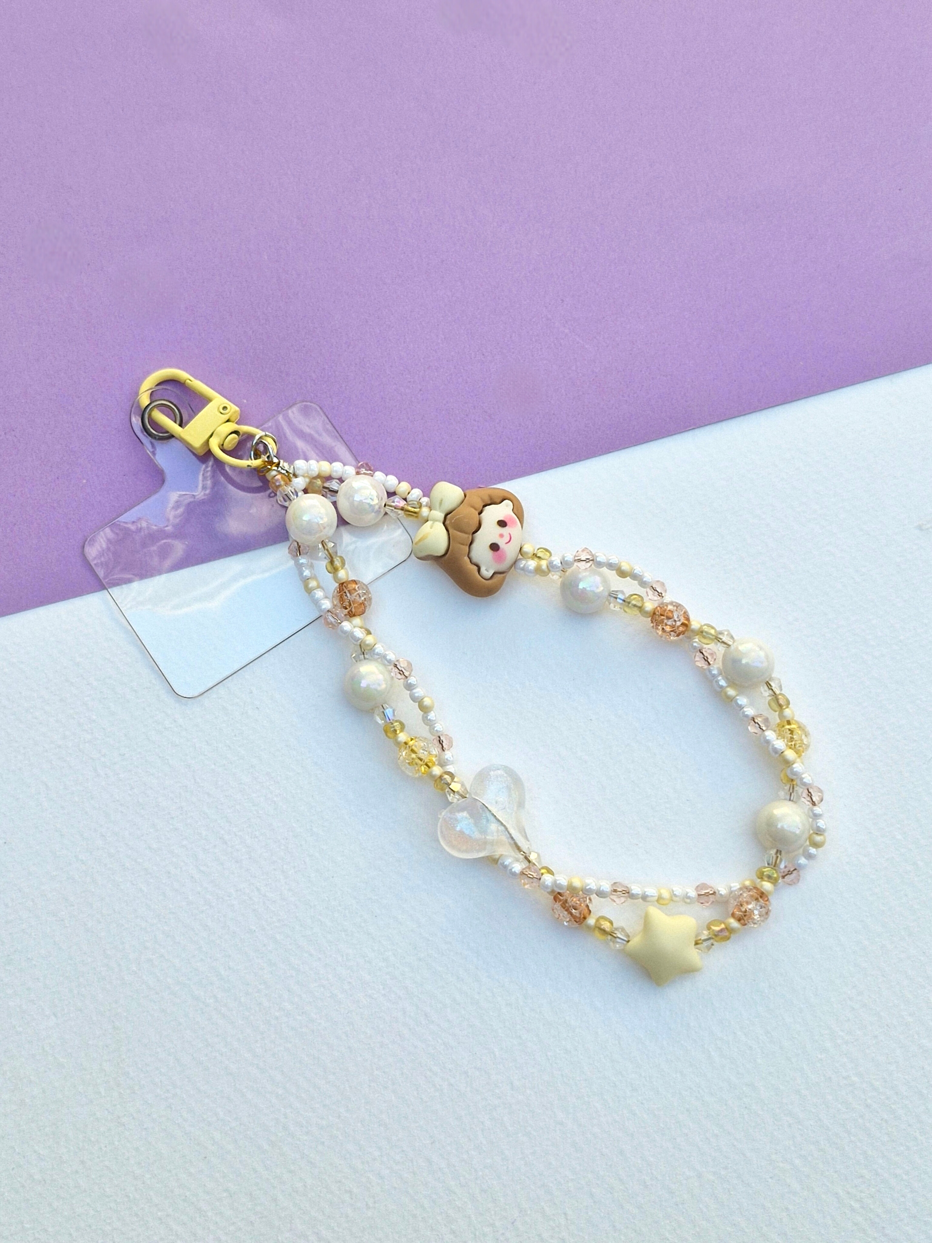 آویز موبایل (فونچارم) مهره‌‌ای سفید کرم مدل دخترک