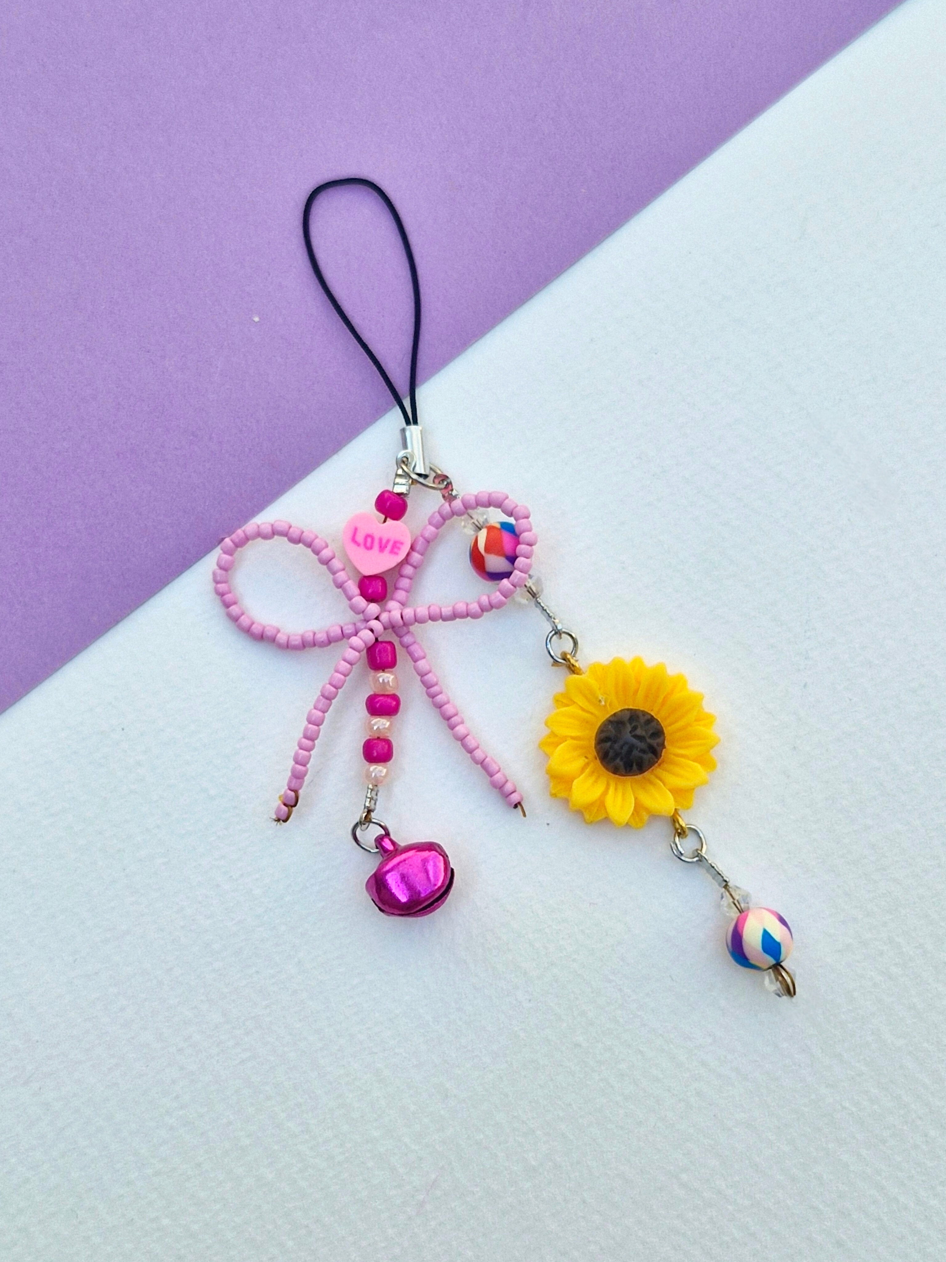 آویز کیف و موبایل مدل آفتابگردان و پاپیون